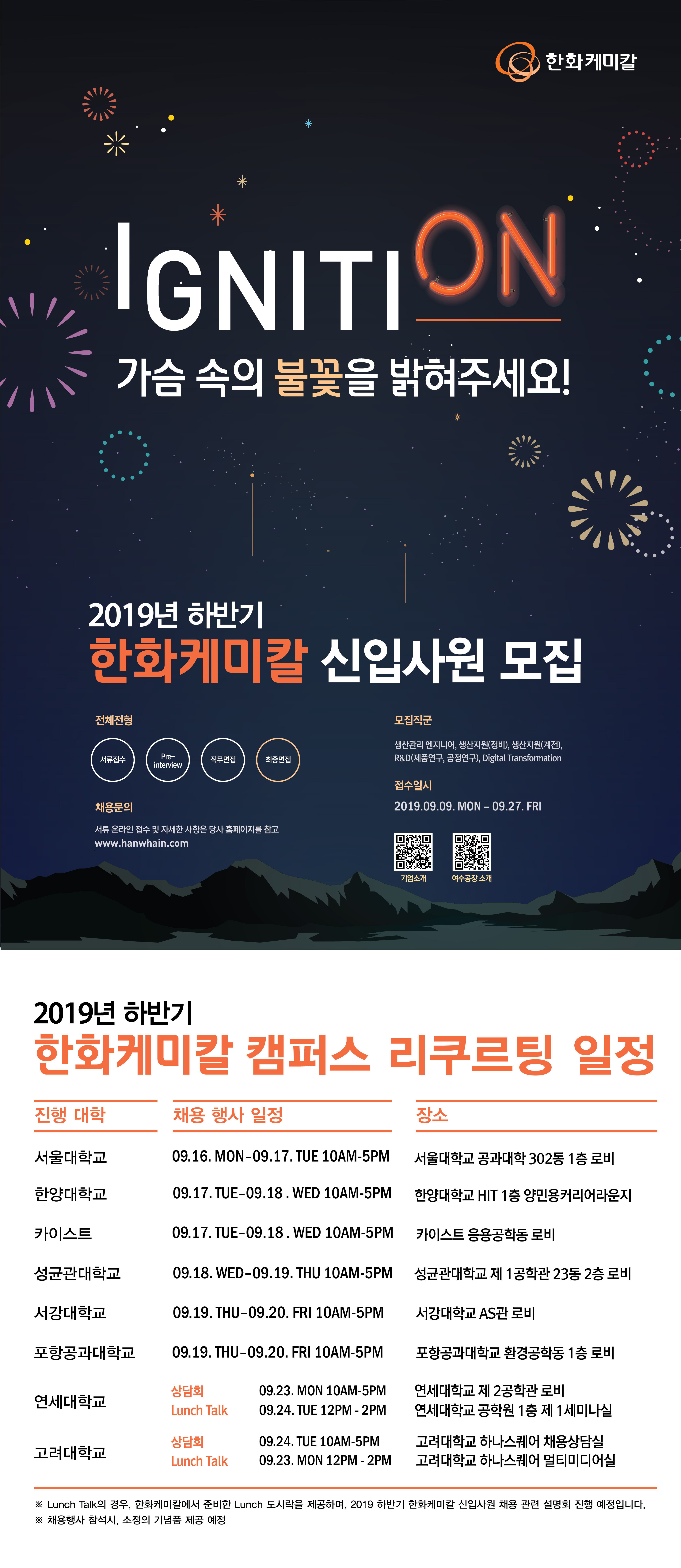 제목 (~9/27) [한화케미칼] 2019년 하반기 신입 공개채용 안내
